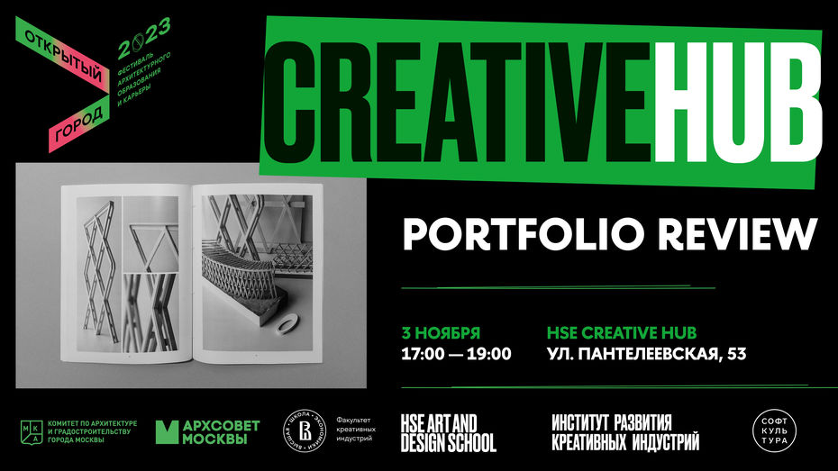 Фестиваль Москомархитектуры «Открытый город» и образовательный проект «Софт Культура», при поддержке НИУ ВШЭ, провели ежегодное PORTFOLIO REVIEW. Публичная защита 10 лучших портфолио прошло 3 ноября в HSE CREATIVE HUB.