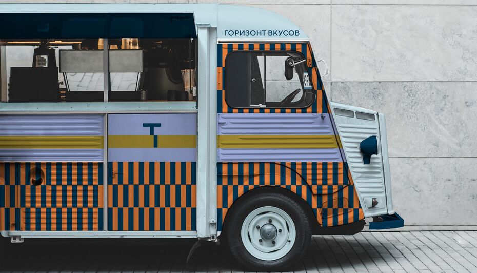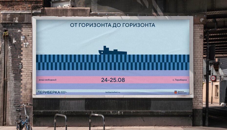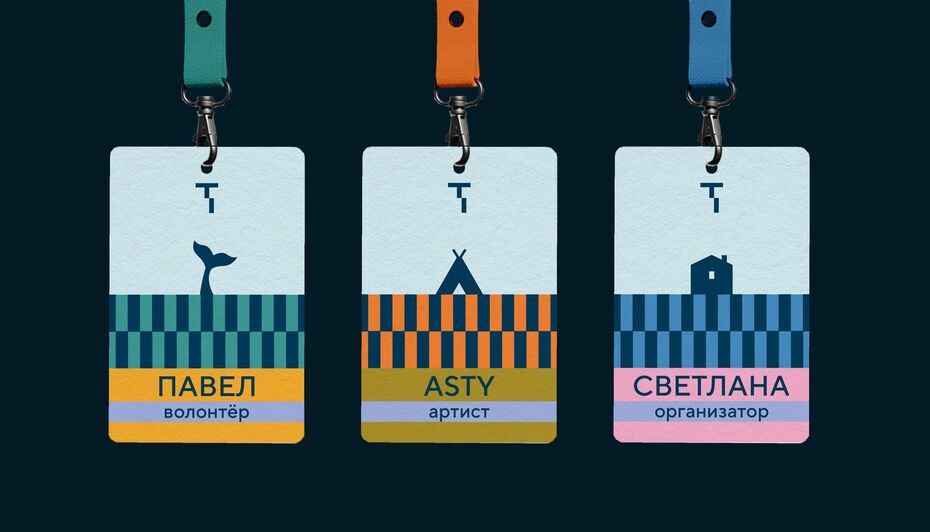 Логотип и фирменный паттерн отсылают к отражению в воде и морским пейзажам. Он также напоминает о слогане фестиваля — «От горизонта до горизонта» — и намекает на многослойность посёлка, аскетизм севера и авангардное искусство. А сдвиг в логотипе и фирменном стиле решает важную практическую задачу — выделиться среди других логотипов, состоящих из одной буквы Т.