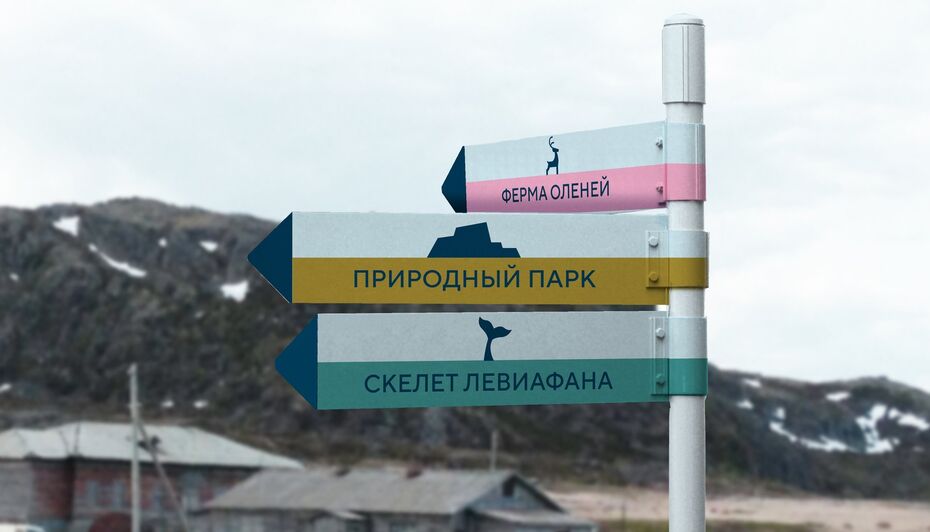 При разработке визуальной айдентики Анастасия старалась разрушить стереотипы о серо-синем скучном севере и вдохновлялась цветами, которые видела во время поездки: «Очень повлияла сама поездка в Мурманск и Териберку. Там столько красок природы! Тундра, мхи и травы, море, дома. А местные жители постоянно борются с погодной серостью, раскрашивая свои дома в яркие цвета. Я ходила и постоянно фотогорафировала отдельные текстуры и фасады домов. Так что палитра буквально пипеткой взята из окружения».