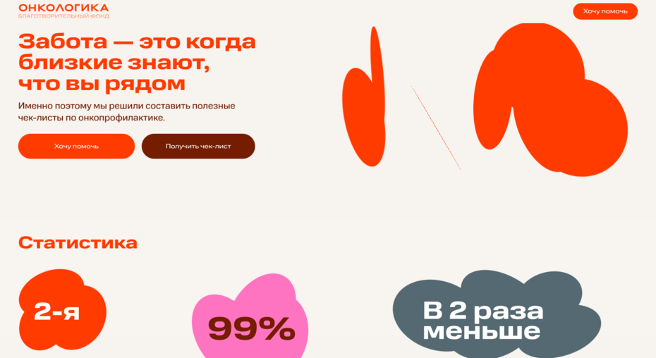 На сайте, созданном студентами Школы дизайна НИУ ВШЭ, представлены полезные чек-листы, позволяющие оценить факторы риска и узнать, как заботиться о своём здоровье. Здесь собрана актуальная статистика, которая показывает масштаб проблемы, а также истории людей, сумевших преодолеть болезнь. Кроме того, лендинг даёт возможность помочь тем, кто сейчас борется с онкологией, поддержав благотворительный фонд.