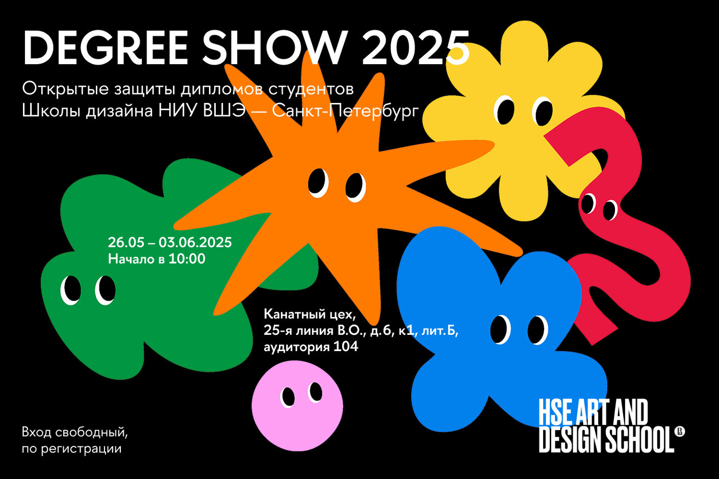 С 26 мая по 3 июня 2025 года в Канатном цехе Питерской Вышки пройдёт ежегодный фестиваль открытых защит дипломов Школы дизайна НИУ ВШЭ — Санкт-Петербург. Все желающие смогут посетить выпускные квалификационные экзамены студентов IV курса бакалавриата и II курса магистратуры и познакомиться с дипломными проектами тех, кто уже сейчас формирует будущее дизайн-индустрии.