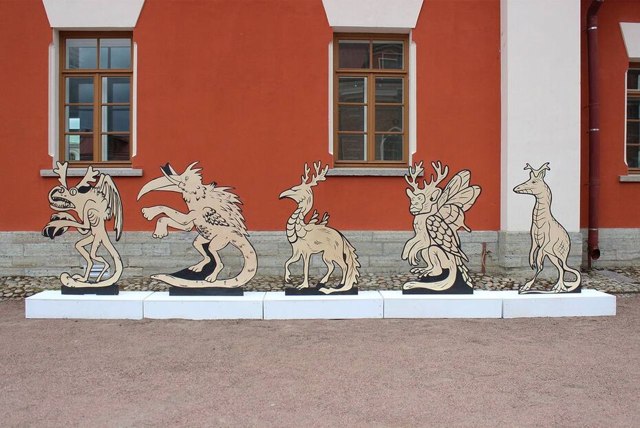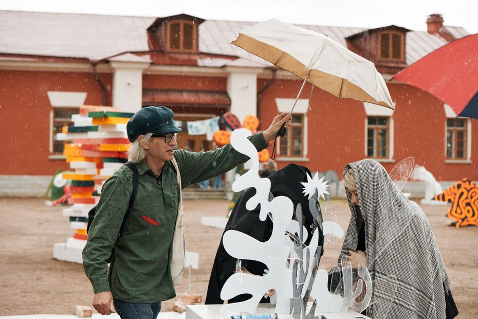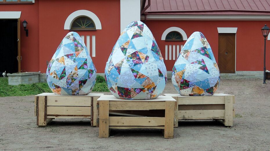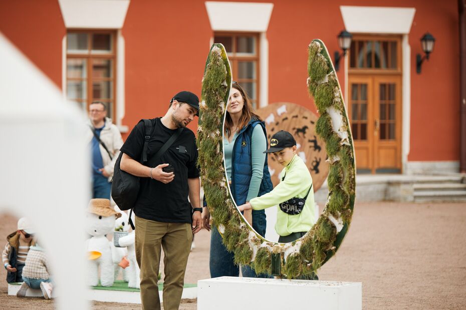 Эти работы выполнены из самых простых материалов — дерева, текстиля, пластика и железа. Крупный размер арт-объектов и отсутствие галерейных рамок даст гостям возможность почувствовать себя частью выставки и рассмотреть объекты не отдельно — сами по себе, а вместе с историческими постройками комплекса Императорской фермы.