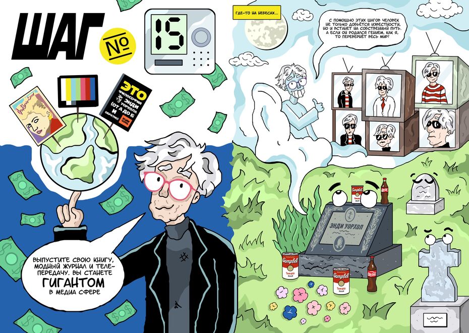 В рамках курсов Школы дизайна мне понравилось делать плакаты, посвященные Эдуарду Лимонову. Во время работы над ними я нашёл разные приёмы обработки изображения и полностью абстрагировался от рисования. К тому же они очень даже недурными вышли. Вне учебы из моих работ мне нравятся комикс и мультфильм, посвященные Энди Уорхолу, и пара концептуальных плакатов.