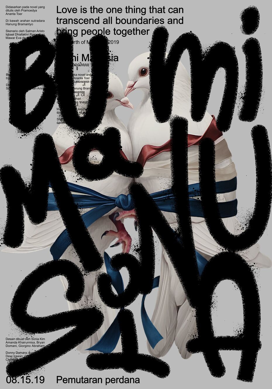 «О конкурсе я узнала от своего преподавателя Юрия Гулитова. Как раз перед этим проходил конкурс альтернативных киноплакатов HSE x ITS, в рамках которого я сделала серию Bumi Manusia, — поделилась Соня Ким. — Мне хотелось отправить на биеннале именно новые работы, потому что они отражали мой текущий уровень. Я советовалась с Юрием Ивановичем, и мы старались отобрать плакаты, которые были бы понятны и интересны корейской аудитории. Из трёх отправленных работ в финал прошёл именно этот. Несмотря на некоторую примитивность, он нравится многим. Этот плакат выделяется сочетанием хрестоматийного образа влюблённых с элементами современной визуальной культуры, что подчеркивает актуальность тем, затронутых в произведении».