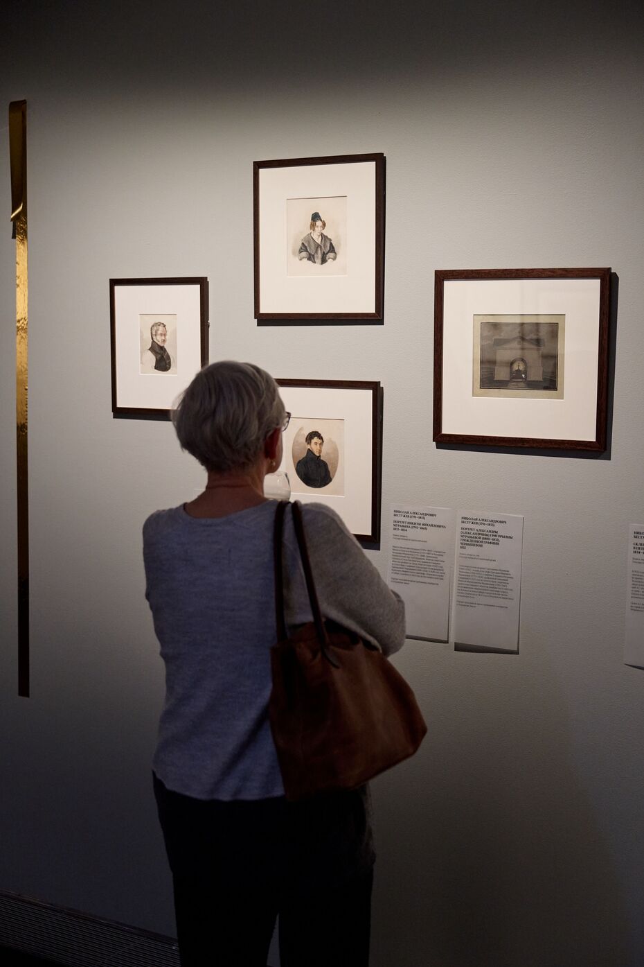 «Это была наша первая работа не в Петербурге. В этот раз, помимо авторского надзора, мы занимались развеской картин. Это было непросто, особенно учитывая, что на выставке представлено большое количество портретов. В итоге всё идеально сложилось: мы видим, что главный персонаж выставки — в окружении родных и своих пейзажей, члены семьи смотрят друг на друга, а друзья — рядом, — рассказала Ева Белоглазова. — Нам было важно не только показать искусство, но и создать особое ощущение у посетителей — чтобы они находились внутри этой эпохи, в кругу тех, кто переживал и творил эпохальные события».